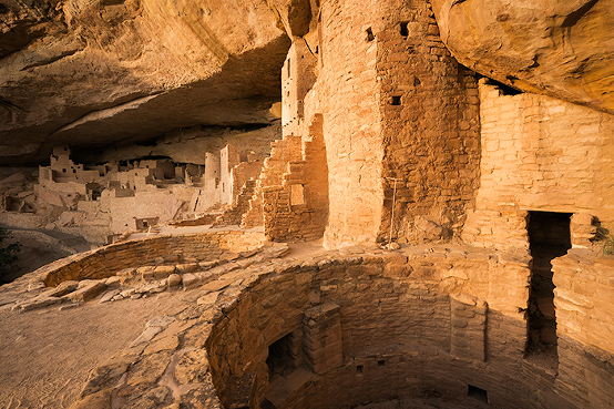 Seasons: Prime time to visit is probably early spring or late fall when the sun is lower in the sky and the light is less contrasty. Guided tours operate from May until September. Or consider visiting in winter when the light is even more diffused. In winter, guided tours are limited to the Spruce House (closed until stabilized). Telephoto lenses are needed for capturing the Cliff Palace and Square Tower ruins from observation points on Chapin Mesa Road. (Wetherill Mesa region of the park is open May-October, limiting visits to Long House and Step House ruins.)