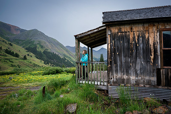 Standing on the front porch of the Gustavson’s house in Animas Forks Ghost Town