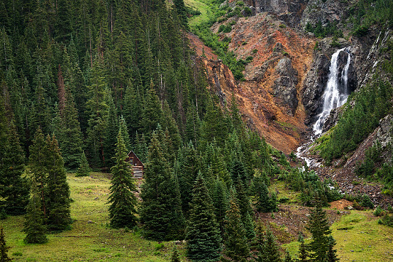 Can you spot the little cabin at the base of the waterfall in the pic above? Maybe it belonged to a prospector who tunneled into the rocks looking for silver?