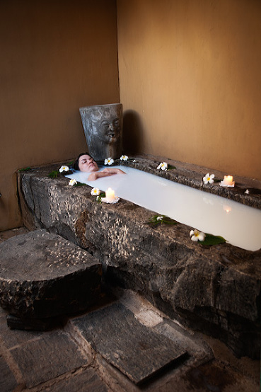Elsewhere on the property is a free standing treatment center where jars of herbal medicine, additional massage rooms, and stone tubs are located. Most of these treatment areas are for the guests who stay 7-21 days to participate in various medical/purification/rejuvenation programs. And it’s also where you go to float among herbs or flowers or soak in a milk bath..jpg)