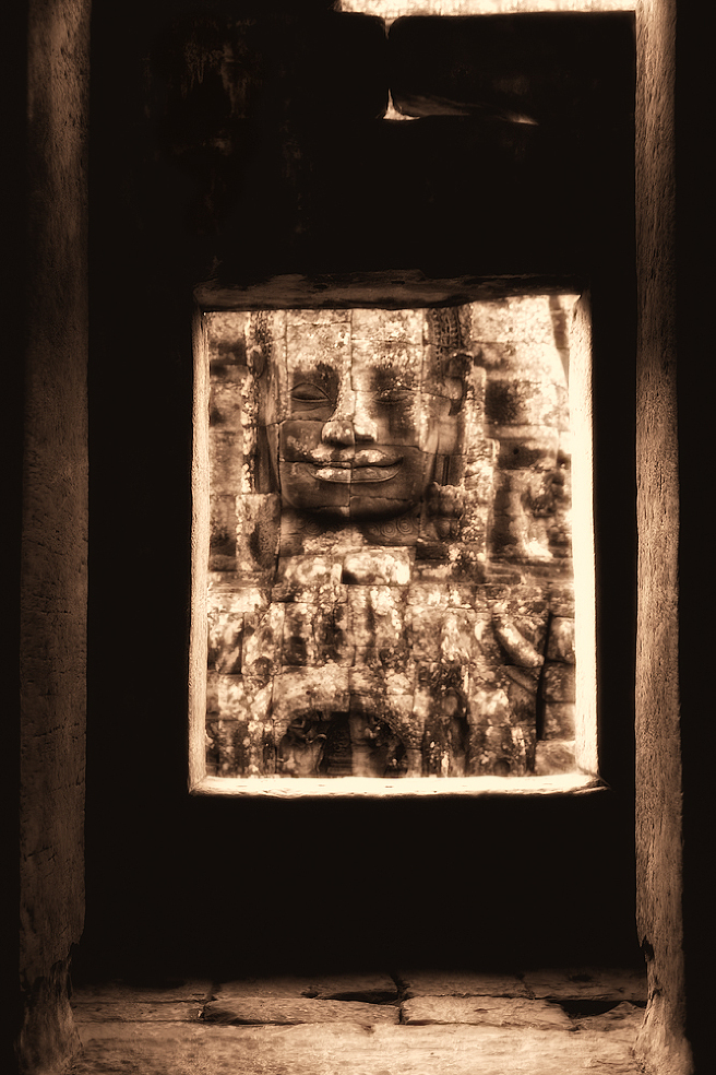 Temple is probably Bayon from in the little shrine looking at one og the four headed sculptures