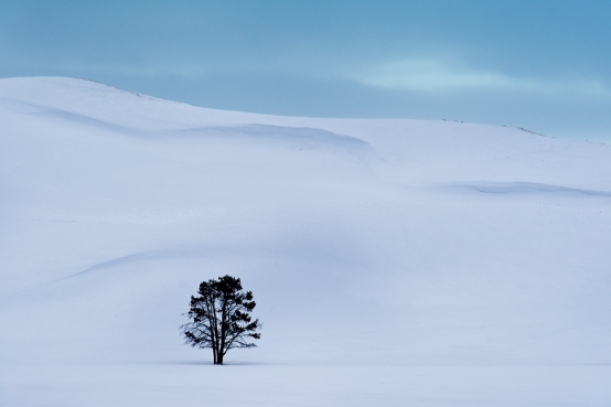 Just a lone tree in Yellowstone’s remote Hayden Valley. Travelled quite a distance by snowmobile from Old Faithful to reach this famed valley, hoping to see some wolves. Did see one little guy waaaaaaay up on a hill curled up in a ball, trying to keep warm I’d guess, as the temps dipped 10 below zero that afternoon. Not much else to photograph besides this little tree, and not sure I’d brave the freezing cold wind again on that long journey just for this shot.